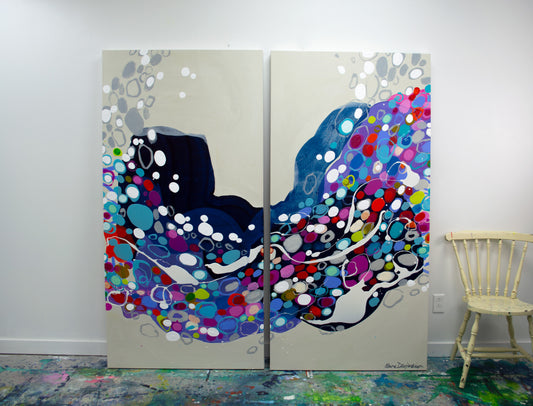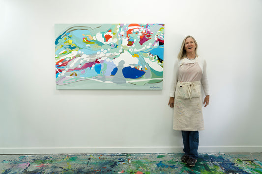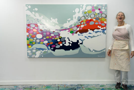 My mum used to share nuggets of information with me, which I later referred to as pearls of wisdom. While the information was not always solicited, her intentions were good! This series captures the essence of those moments—sometimes comforting, sometimes unexpected, but always given with love. The layers in these paintings reflect the complexity of advice: some messages stick with us, while others fade into the background, only resurfacing when we need them the most.