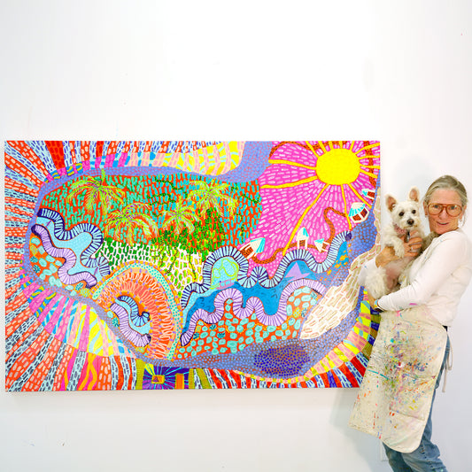 This collection features the original artworks that inspired the Spring/Summer 2026 apparel designs. Each painting began as an intuitive exploration of color, movement, and emotion, created in the studio and later translated into wearable form.