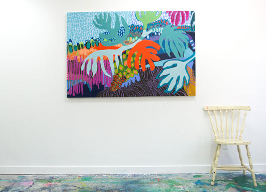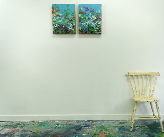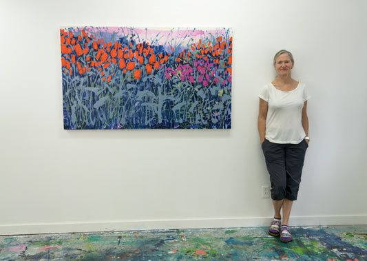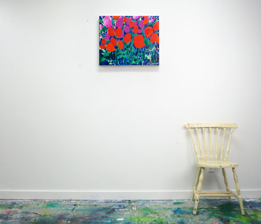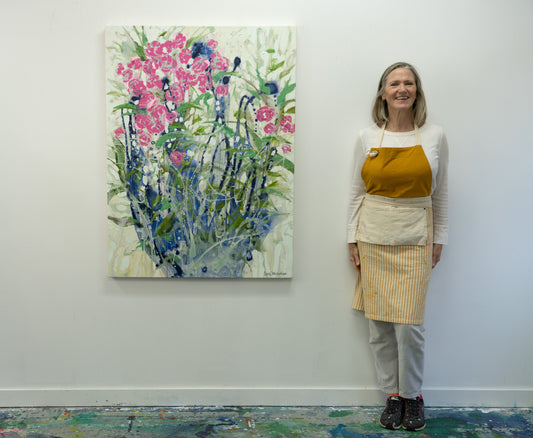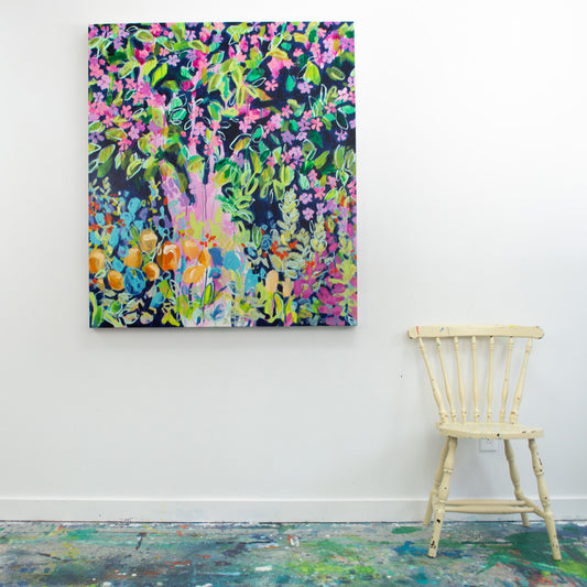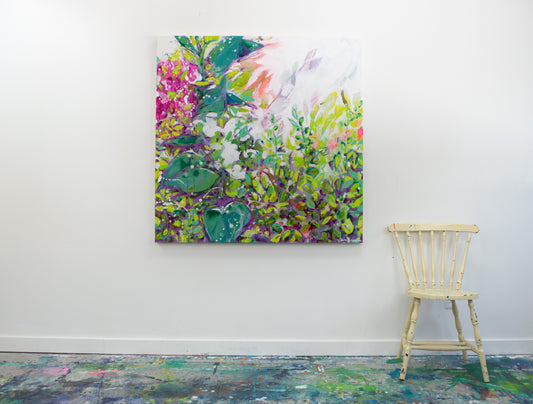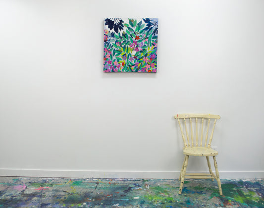 Inspired by my love of gardening, this collection captures the vibrancy and richness of nature. Flowers, leaves, and organic shapes emerge in layers of color, reflecting the ever-changing beauty of a garden in bloom. Just as a garden is a place of growth, renewal, and discovery, so too are these paintings—each brushstroke a reflection of the life that thrives within the natural world. This series is a celebration of the cycles of nature, from the first sprout of spring to the lush fullness of summer.