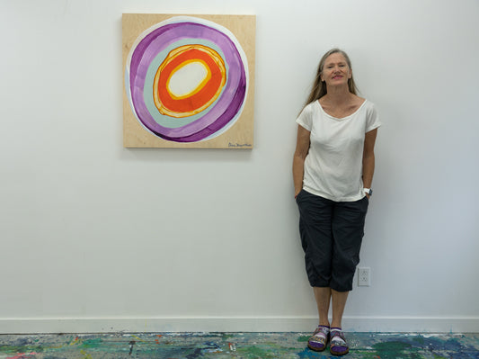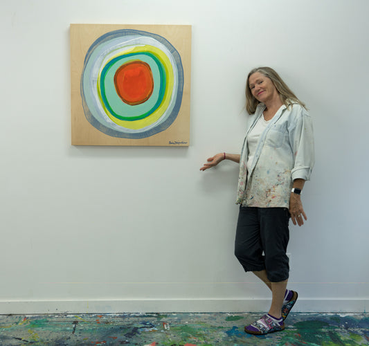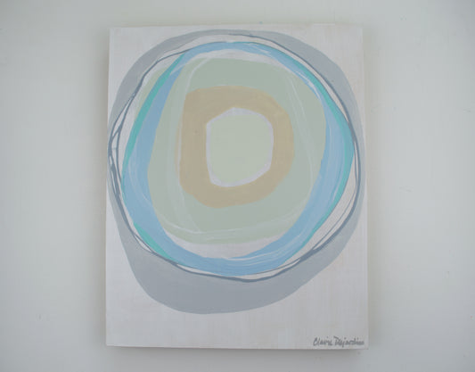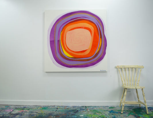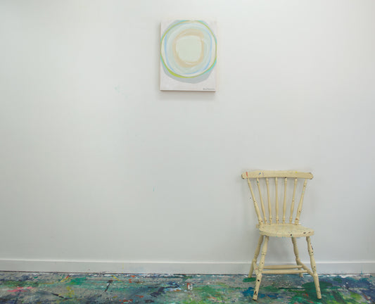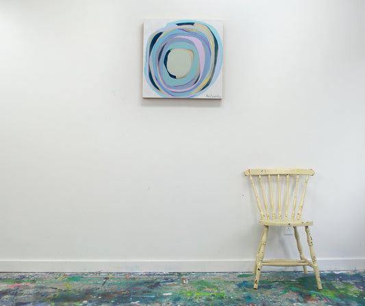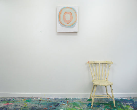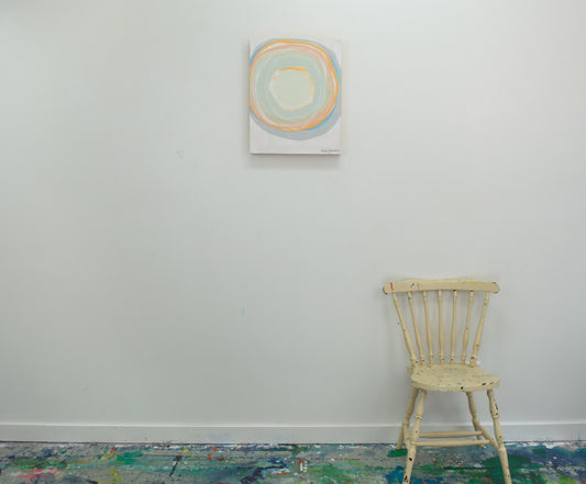 The word halcyon speaks to a time of peace, comfort, and nostalgia—a memory wrapped in warmth. This collection embodies that feeling through layers of color that seem to envelop one another, like a protective embrace. Each shape builds upon the next, creating a sense of depth and security, much like the feeling of being held by a loved one. These paintings are meant to soothe, to remind us of the softness of the past, and to offer a moment of quiet reassurance in an often chaotic world.