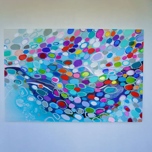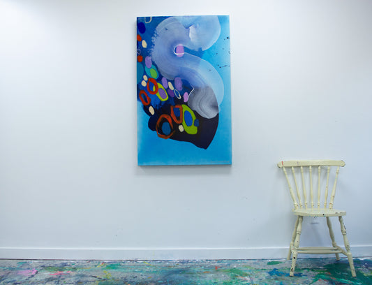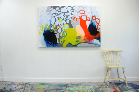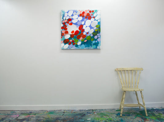 Like a flock of birds moving in perfect unison, the marks in this collection come together to form a rhythmic, almost hypnotic sense of movement. Each brushstroke, each small shape, works as part of a greater whole—creating an intricate dance of color and form across the canvas. There’s a natural fluidity to these pieces, an organic energy that mirrors the way starlings twist and shift in the sky, never colliding but always connected. This series is about unity, motion, and the quiet strength that comes from working together.