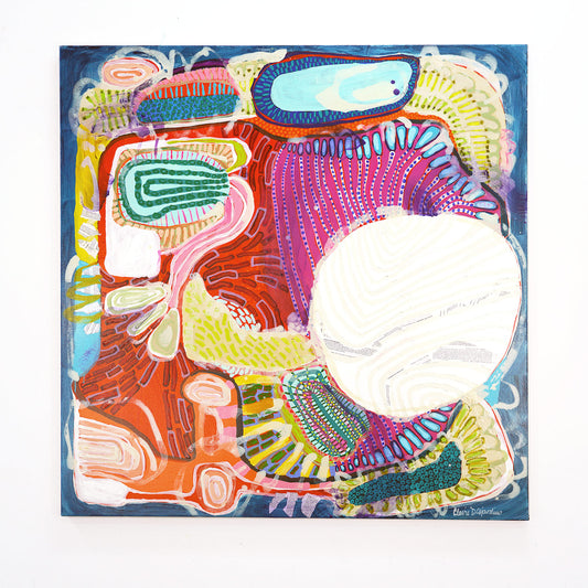 Inspired by a journey across continents, SUMMER SAFARI brings the energy and vibrancy of travel onto the canvas. After returning from a safari in Tanzania, I found myself drawn to the bold patterns, earthy textures, and rhythmic repetition of nature’s designs. But this series isn’t limited to one place—traces of my travels to Mexico, Australia, and Costa Rica weave their way into these paintings as well. Thick, textured paint creates a tactile experience, while dots and repeated patterns evoke the movement of wildlife, the shifting of sand dunes, and the pulse of distant cultures. It’s a celebration of exploration, of the beauty found in faraway places, and of the lasting impressions they leave behind.