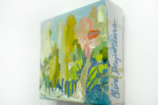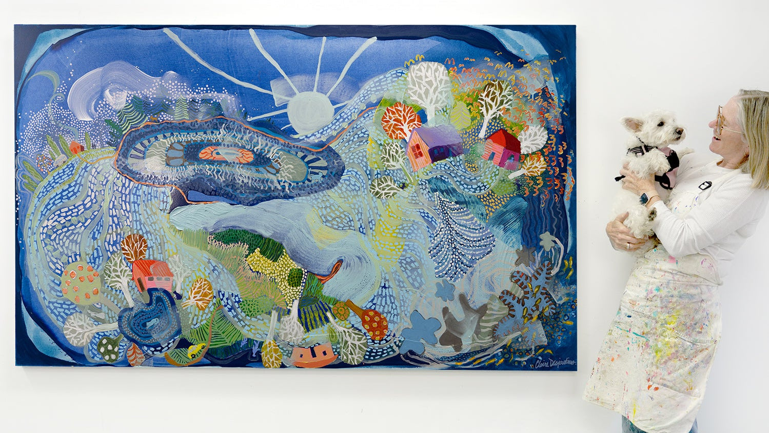 “Claire’s works create joy. Vibrant, unexpected color palettes, inventive use of negative space, and dreamy washes alongside whimsical applications of super-thick paint stoke the viewer’s imagination.”