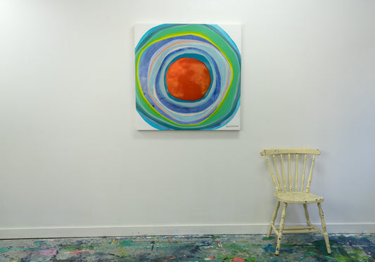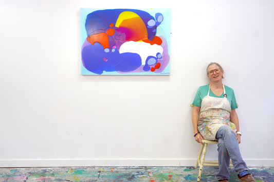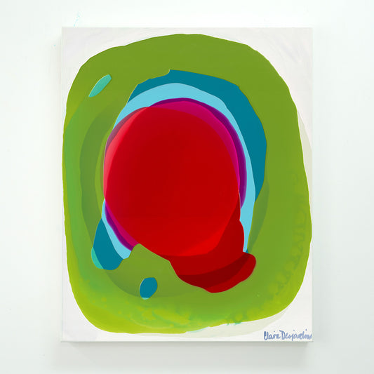 Exploring the gap between thought and creation, these smaller, bold paintings on paper celebrate simplicity and color.