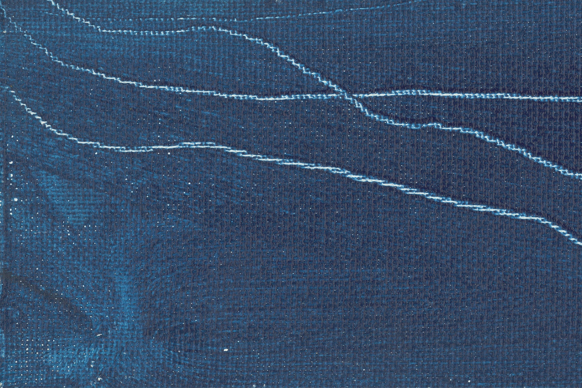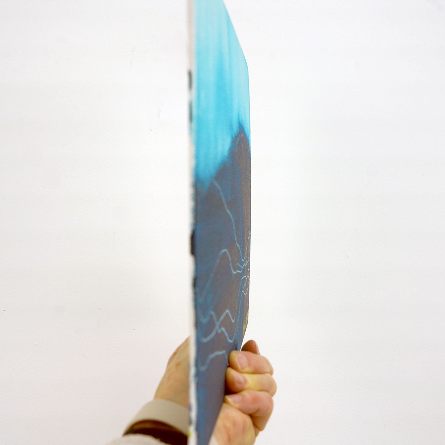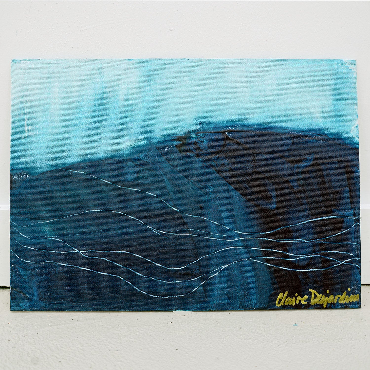 This small painting leans into darker, layered blues, built up thickly and then interrupted by fine scraped lines that suggest movement just out of view. Creating those marks felt instinctive, almost like tracing currents or hidden paths through the paint. The piece holds a sense of stillness, but also mystery—a reminder of how vast and unknowable the ocean can feel when you are surrounded by it on all sides.