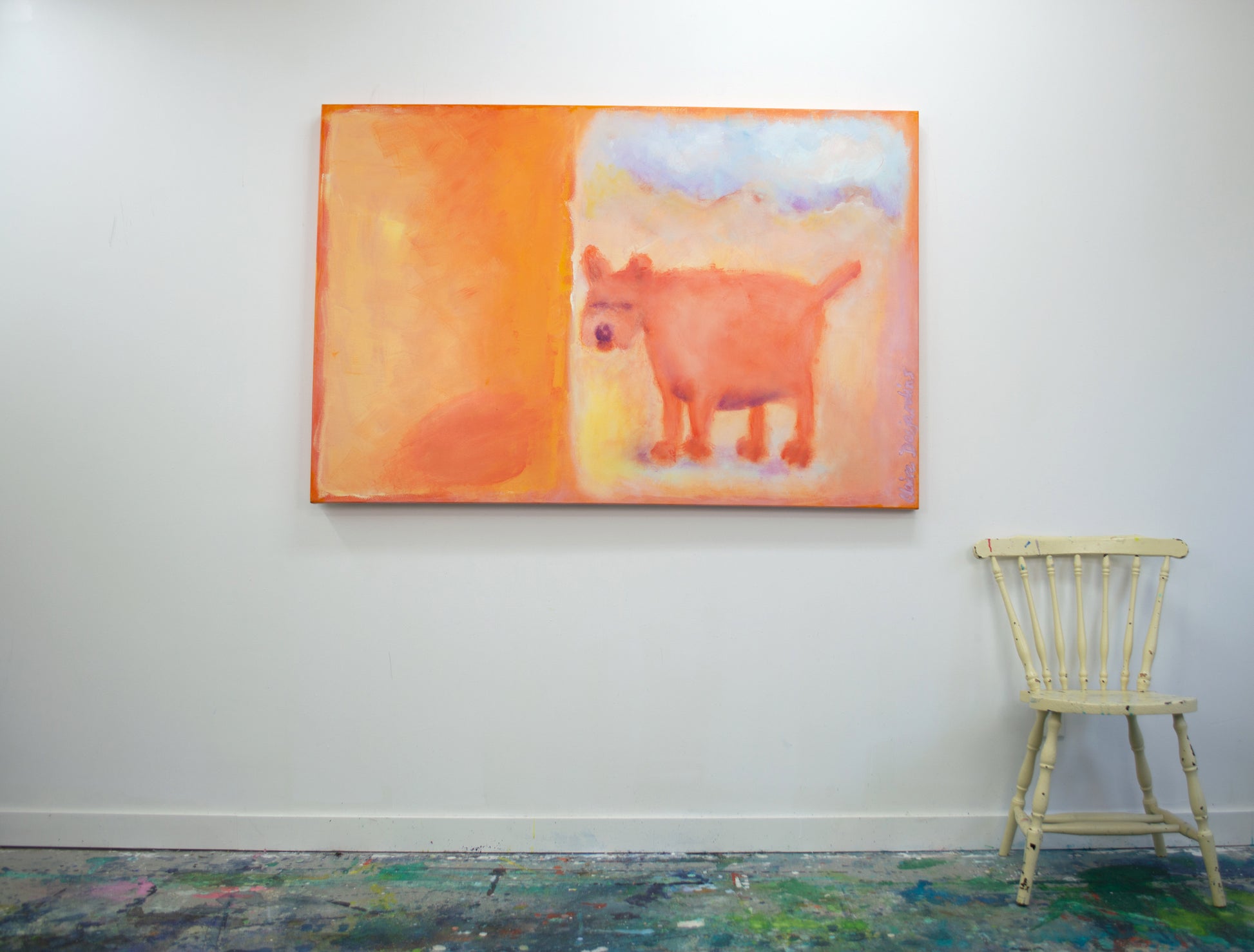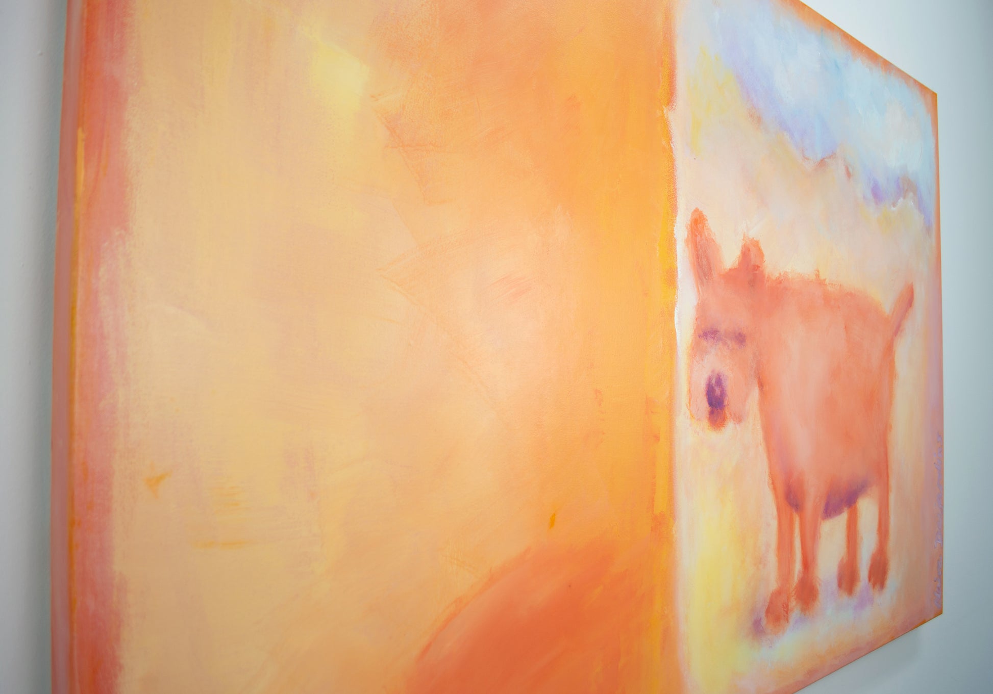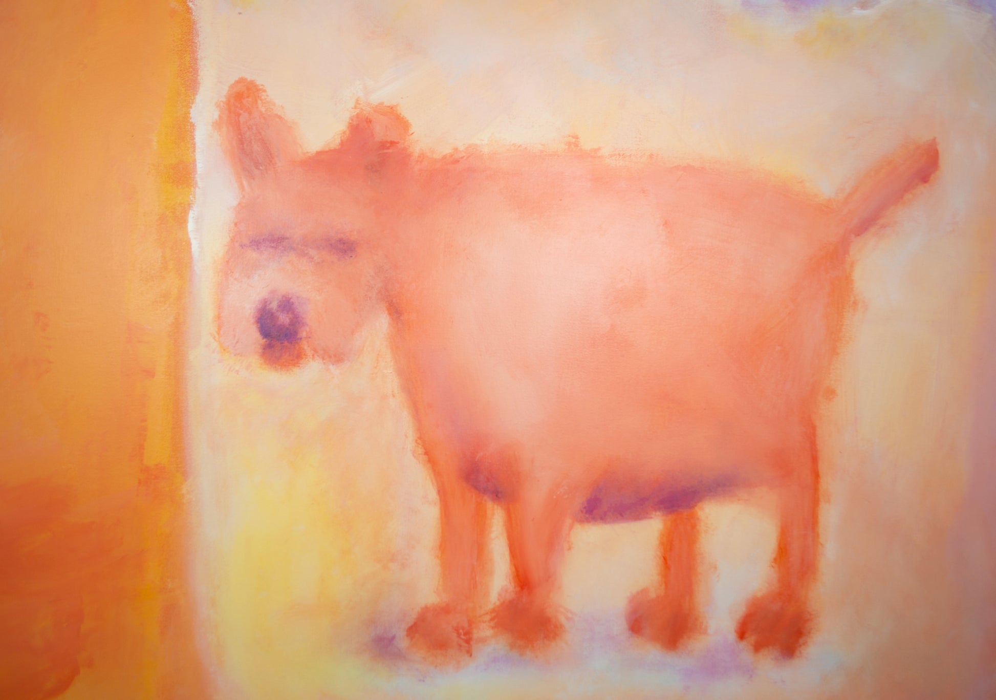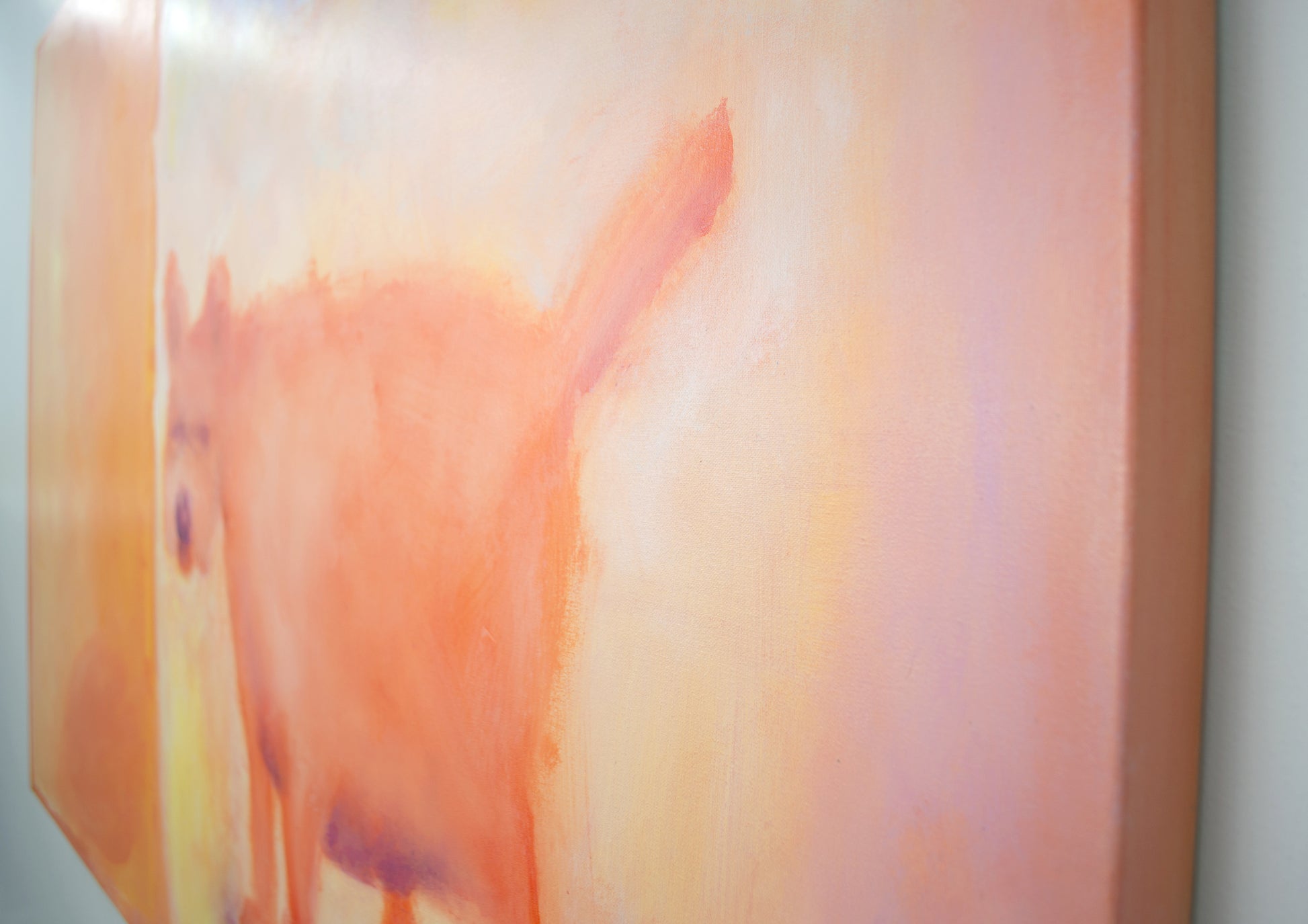Pixel isn't actually orange. That said, when I showed him the painting (I placed it at his level, to watch his reaction), he sniffed the nose and under the tail, and then looked at me, cloyingly annoyed by my attempt to entertain myself at his expense, and walked away in a huff.