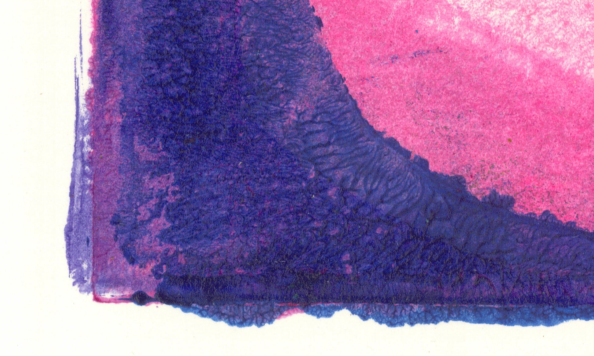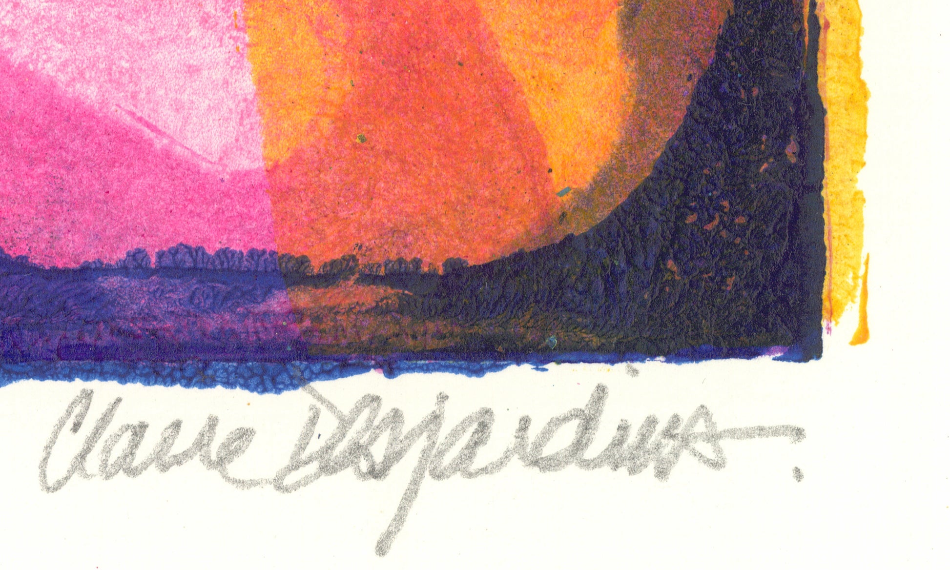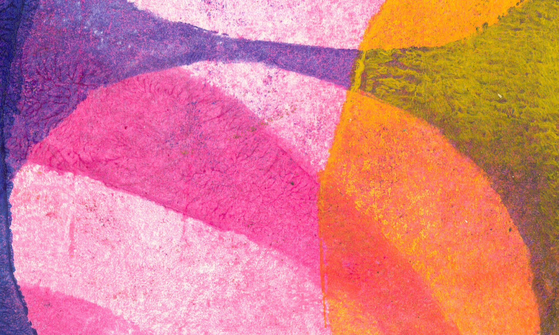 Each piece in OFFSET is a one-of-a-kind gel plate print on 300 lb, 100% cotton rag, acid-free watercolor paper. Signed in graphite, the works highlight the tactile qualities of the printing process: layers of paint press onto paper, producing subtle shifts in transparency and alignment. The edges of color rarely meet perfectly, giving each piece a soft, mid-century-inspired feel that balances structure with spontaneity.