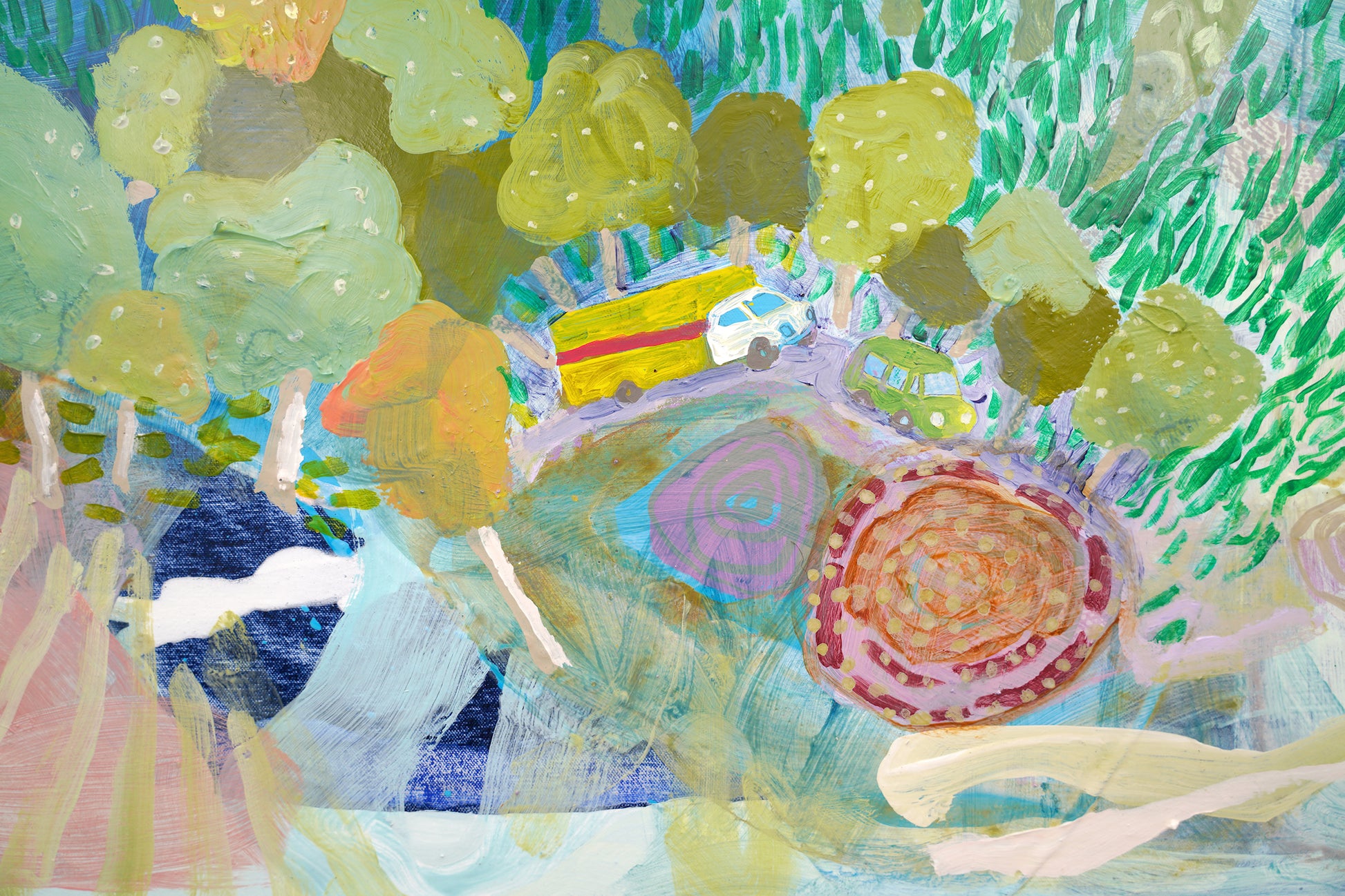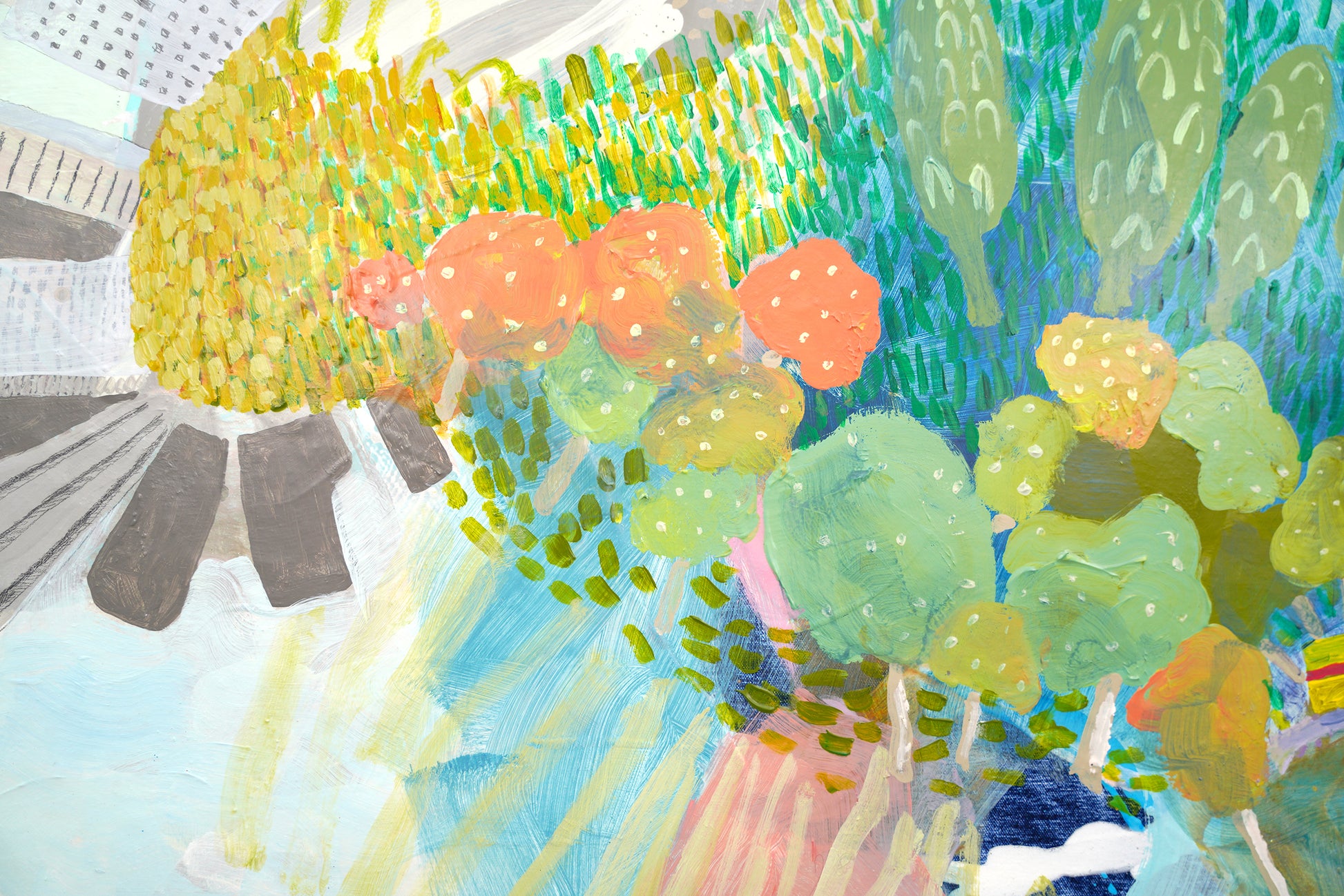 A visual story of our move from Florida back to Canada, Time and Place traces memories, landscapes, and the seasons of change. Tiny roads, houses, cars, and trees unfold across bold color shapes, inviting viewers to reflect on their own journeys.